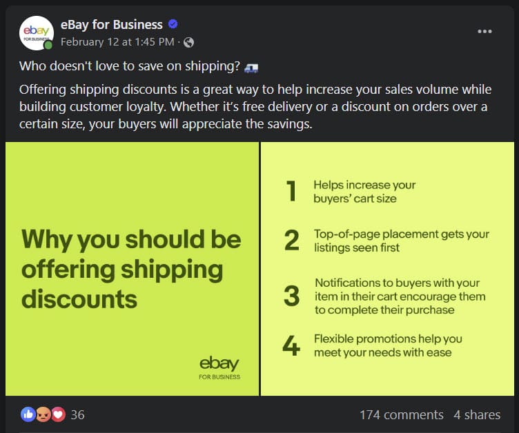 The latest round of backlash played out on the eBay for Business Facebook page, where a post "encourage" sellers to provide shipping discounts has received 174 responses so far.