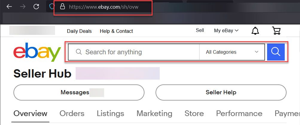 This poses a particular problem because sellers often start from the Seller Hub Overview page as part of their usual workflow which may require searching to research competition, look of prices and sold history, etc.
