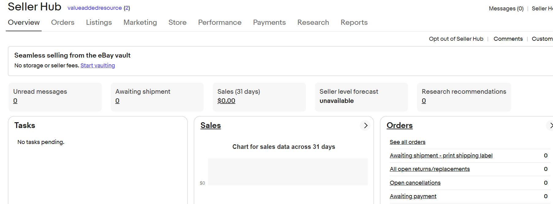 Seller Hub Overview - this link should take you to the overview page for Seller Hub where you can see a summary of your selling info.