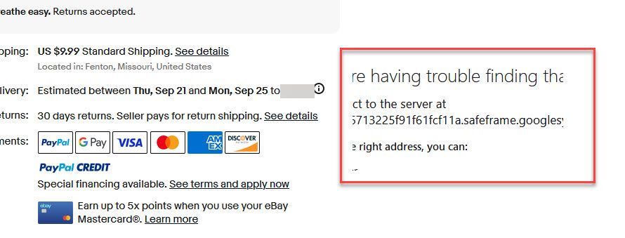 eBay users are increasingly reporting server loading errors that are impacting delivery of both 3rd party ads and 1st party Promoted Listings ads on the site as well as other page loading problems