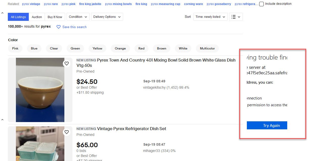 Another user reported seeing an error message instead of a blank box where the 3rd party ads are usually served, both on the listing page and in search results.