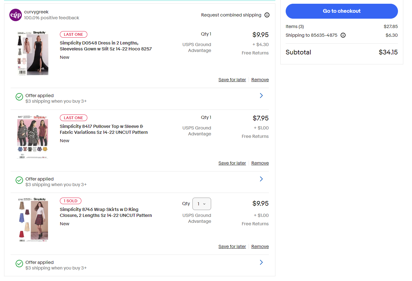 Over the weekend, two buyers should have paid $3 since their order met the threshold, but they were charged the regular shipping rate. I refunded them.