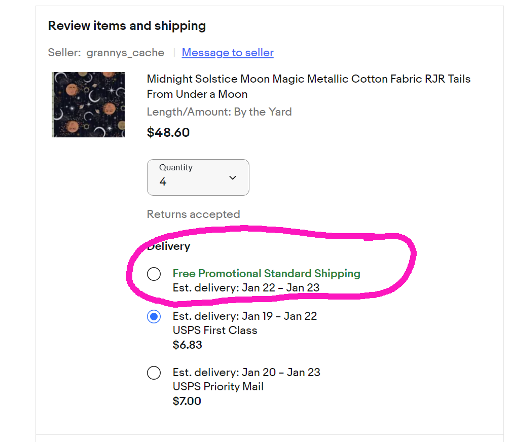 Another seller also noted the cart is not defaulting to the "free promotional standard shipping", showing paid shipping in the initial stage of the shopping cart and requiring buyers to continue to check out before seeing the free option.