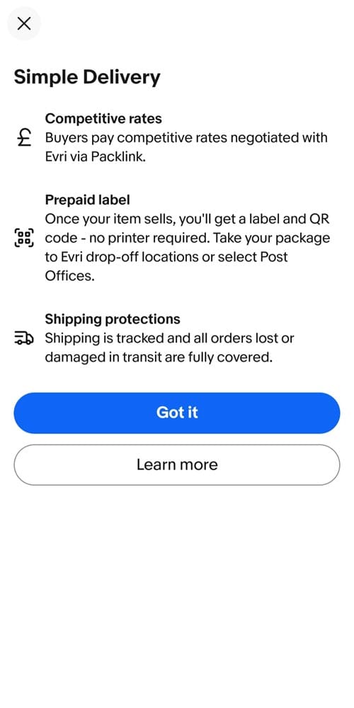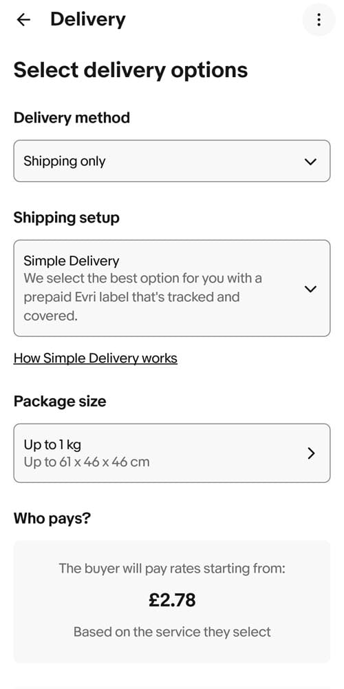 However, that opt out choice will be removed sometime in Q1 2025 as eBay plans to make Simple Delivery (also sometimes referred to as Managed Shipping) mandatory for private sellers on all eligible items - though an exact date has not yet been set.