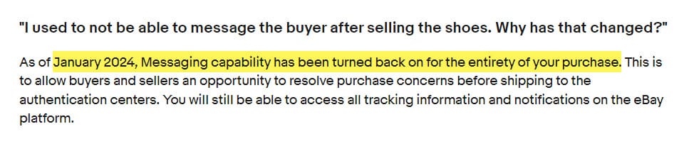 When eBay first launched Authenticity Guaranteed for Sneakers, they inexplicably decided to shut off messaging capability between buyers and sellers for these transactions, leading to many complaints from both sides and contributing to negative buyer experiences.