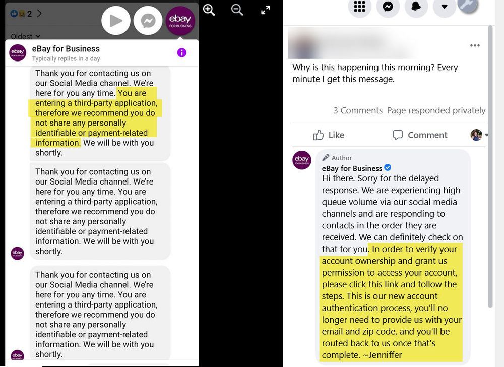Three months ago, eBay sellers noticed a change in the support process through the eBay for Business Facebook page, requiring them to log in to their eBay account to verify and grant access for support.