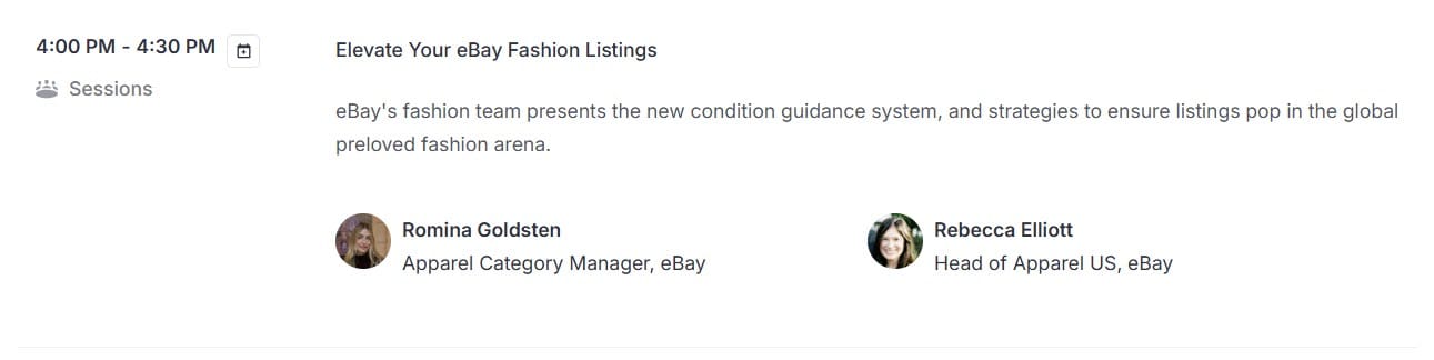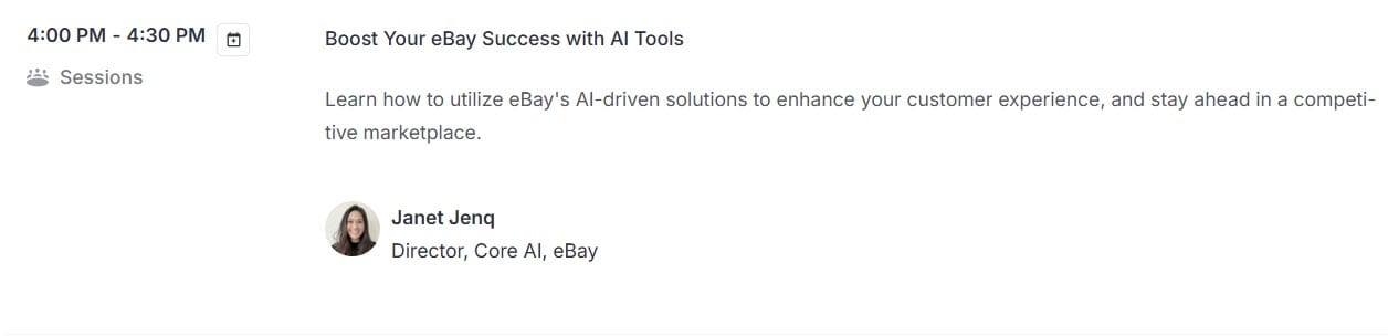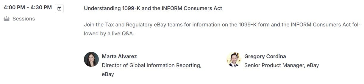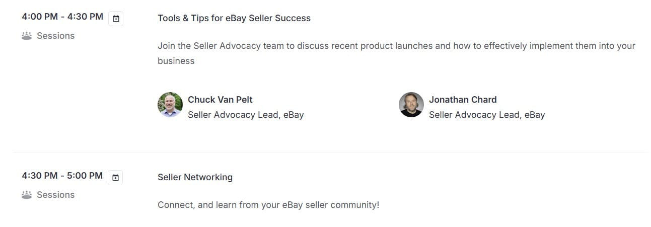 That will be followed by overlapping breakout sessions hosted by eBay staff and then a seller networking session to close out the event.