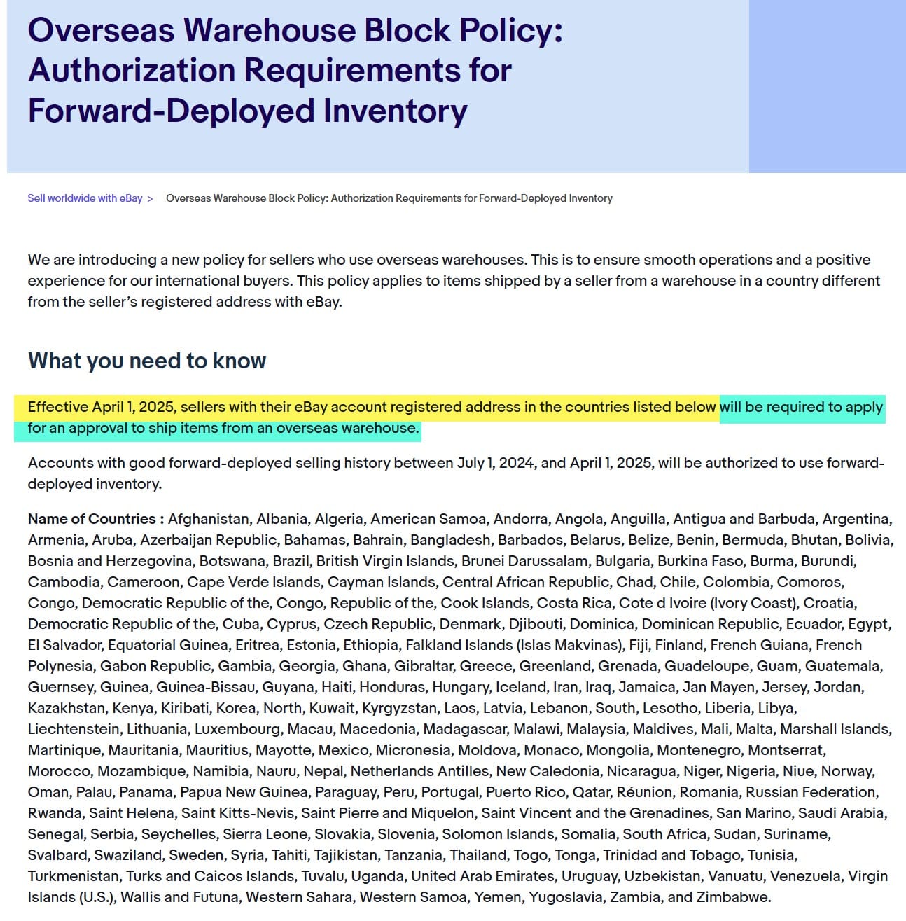 Interestingly, eBay recently updated their Forward-Deployed Inventory policy, requiring sellers registered in a long list of locations to apply for an approval to ship items from an overseas warehouse - but notably China is not on the list.