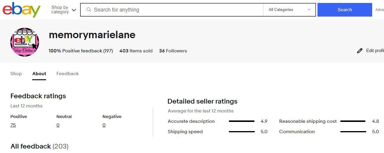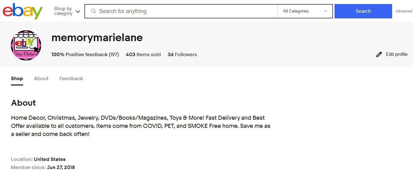 Here is what I'm seeing. Can you check your user/store landing page and see if it looks the same or if it is a personal issue I need to address with Ebay. Thank you.
