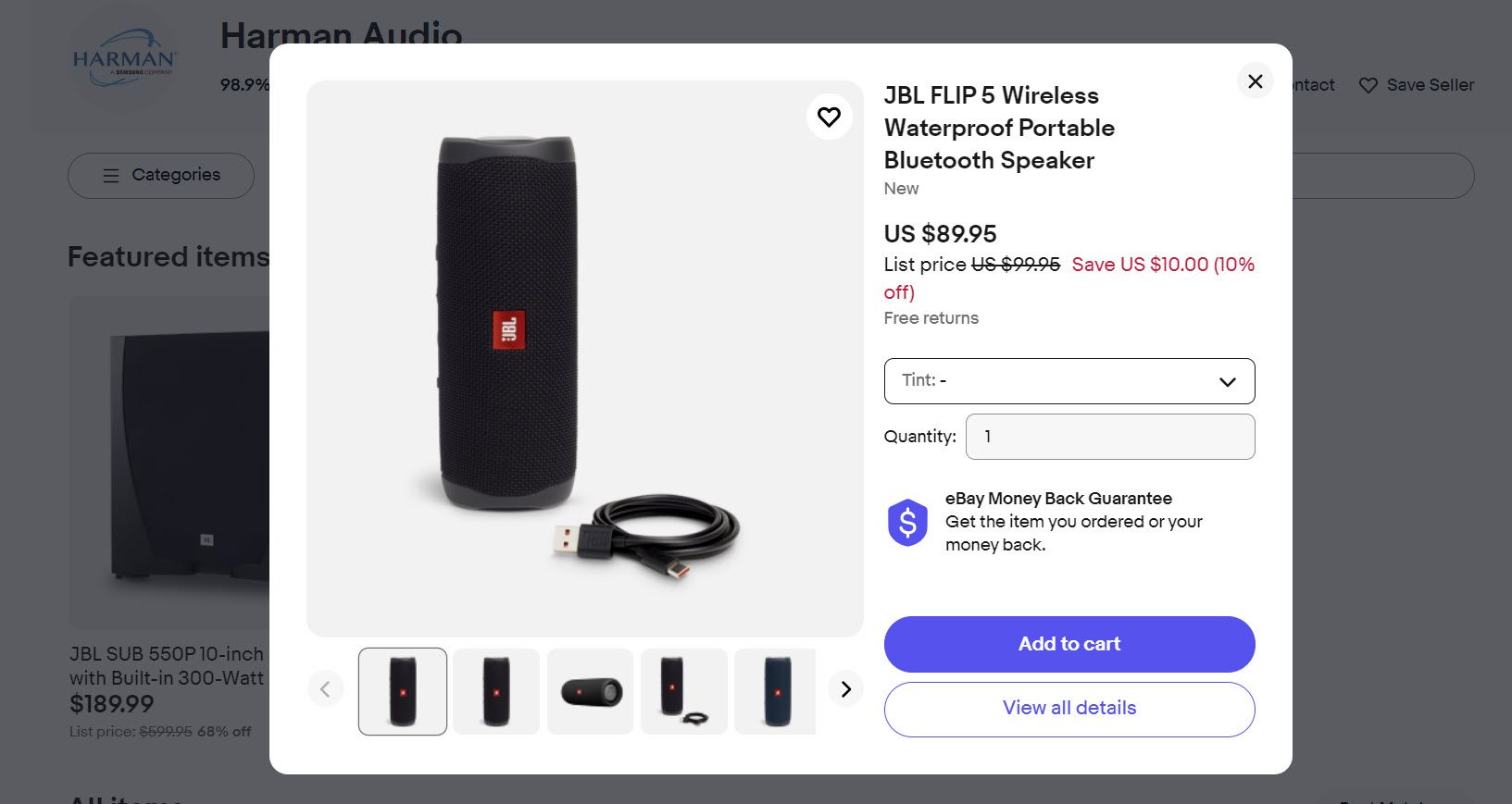 eBay users report receiving server errors when trying to view items in quick view pop up for stores.