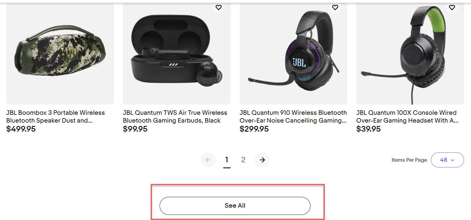 As a temporary workaround, users can scroll down to the bottom of the store page and use the See All button to bring up a list of results that go directly to the item page with no Quick View pop up.