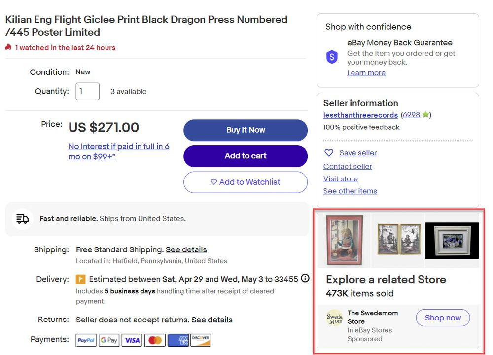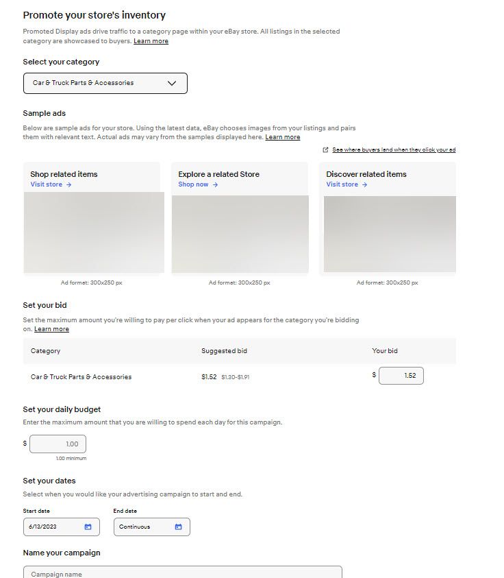 When buyers click your ad, they will land on a page within your store that showcases all the items you sell within the selected category. In this way, we increase visibility of your inventory among relevant eBay buyers.