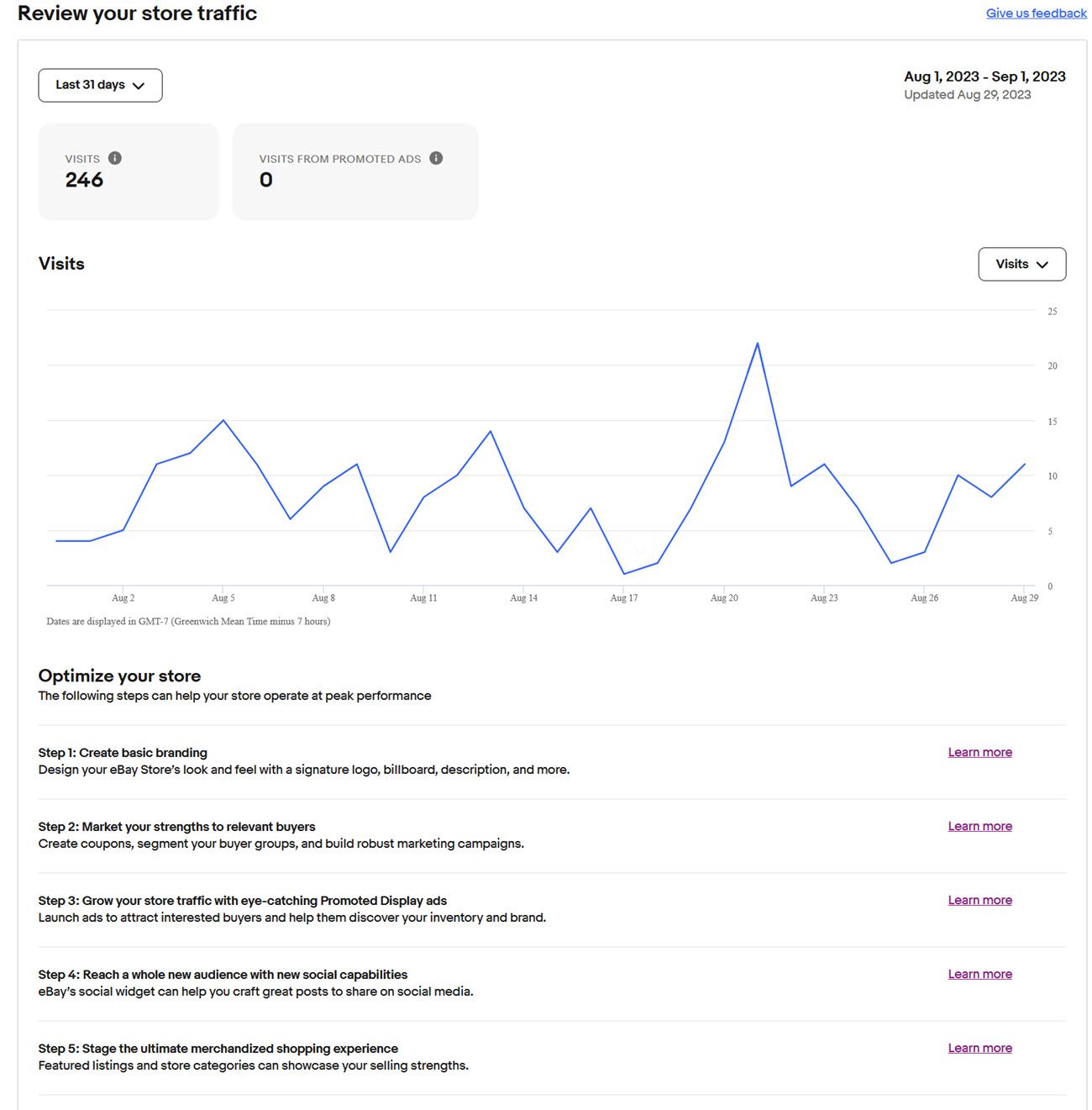 In addition to the statistics, eBay also provides links with recommendations for optimizing your Store.