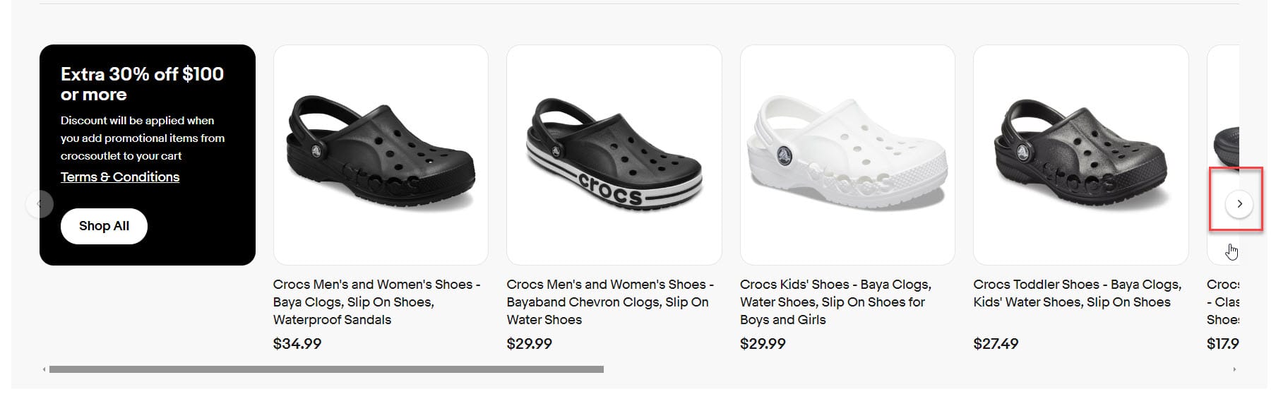 But on the Store's Sale tab, the module does not have an arrow - instead users only see a scroll bar under the module once they hover and have to click and drag that bar to see more items.