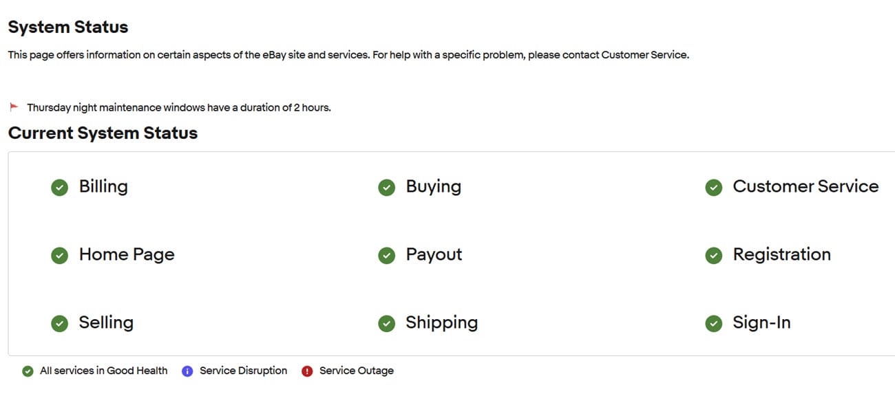And as usual, the eBay system status page shows no outages or disruptions, despite the company's own forums and support channels being flooded with reports.