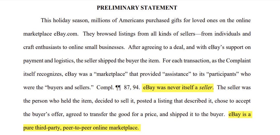 Also, in the ongoing EPA case against eBay for the sales of prohibited pesticides, restricted chemicals, and illegal emissions-control cheat devices on the platform, eBay has been attempting to argue that it is "never itself a seller" and is instead "a pure third-party, peer-to-peer online marketplace" - both of which are demonstrably false in light of TCGPlayer's sales on the platform.