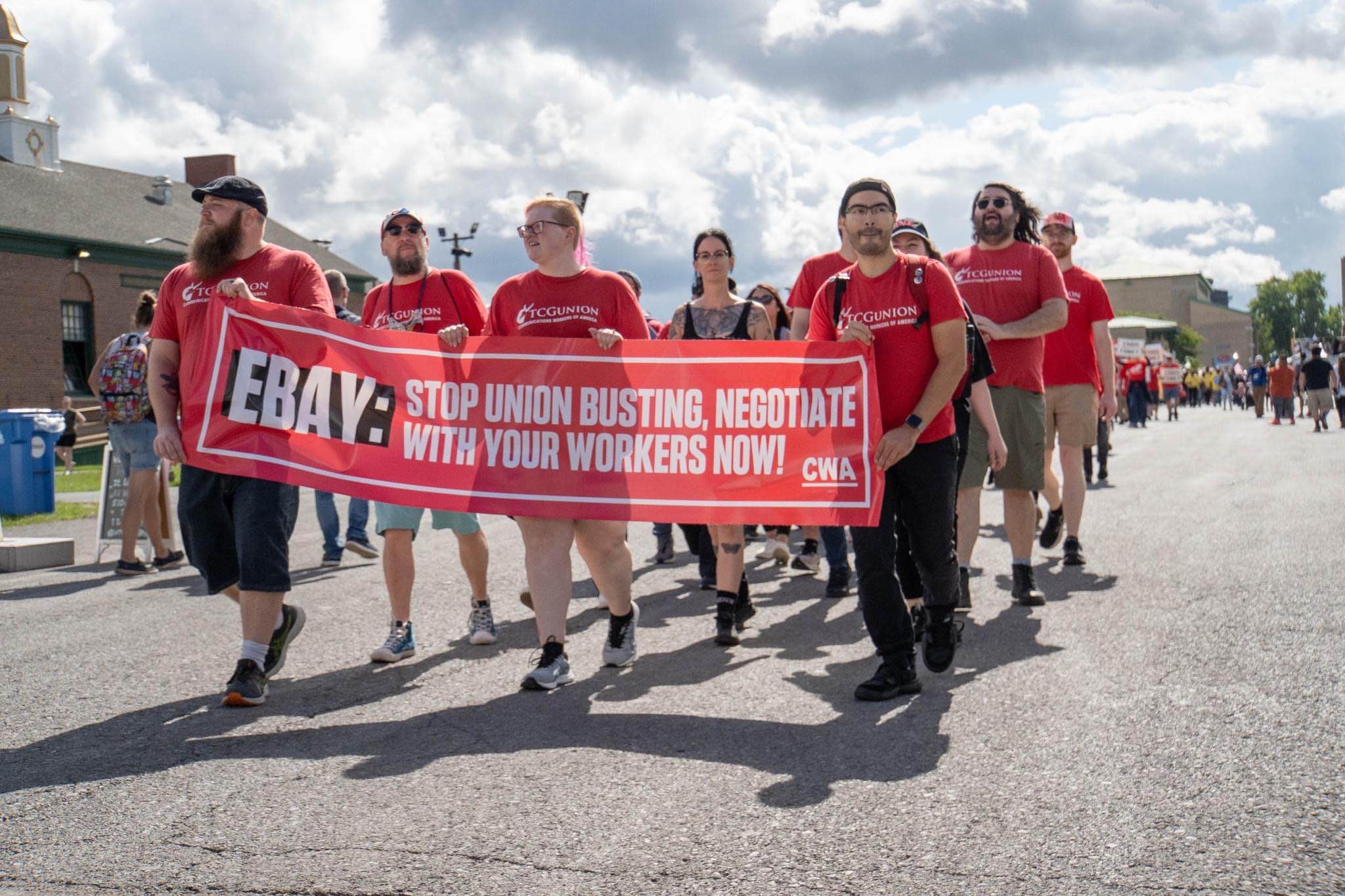 The event was part of a broader effort to bring attention to the year long battle TCGUnion-CWA has fought to bring eBay to the bargaining table, along with multiple National Labor Relations Board complaints that have been filed alleging unfair labor practices, illegal surveillance & benefits changes and pregnancy discrimination.