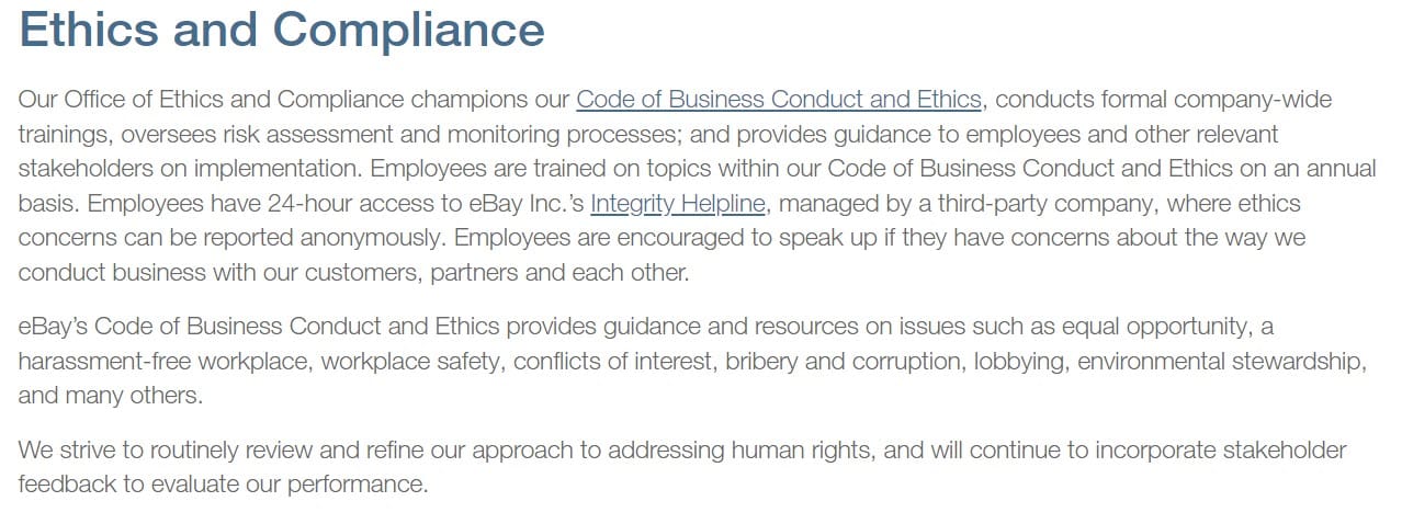 Is eBay is living up to the values expressed in their publicly posted Human Rights Policy and should this assessment include topics related to employees' working conditions, pay or benefits? Let us know what you think in the comments below!