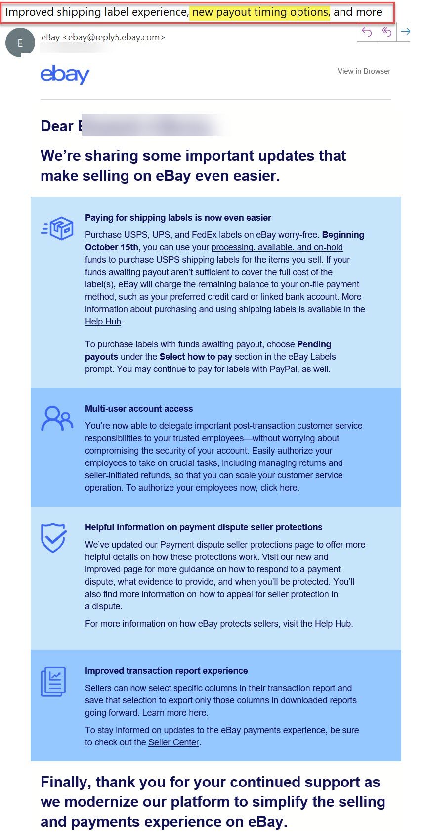 eBay Teases New Payout Timing Options?