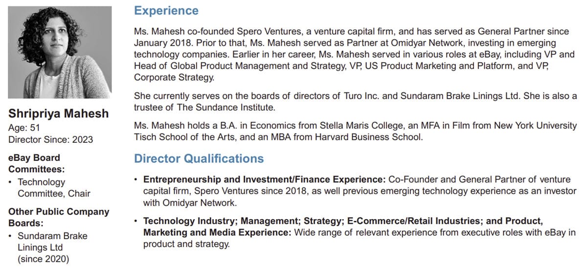 While serving on the eBay Board of Directors, Mahesh has also actively maintained her position as Founding Partner of Spero Ventures - a for-profit venture fund spunout from Omidyar Network in 2018 with Pierre Omidyar as its sole limited partner at the time.