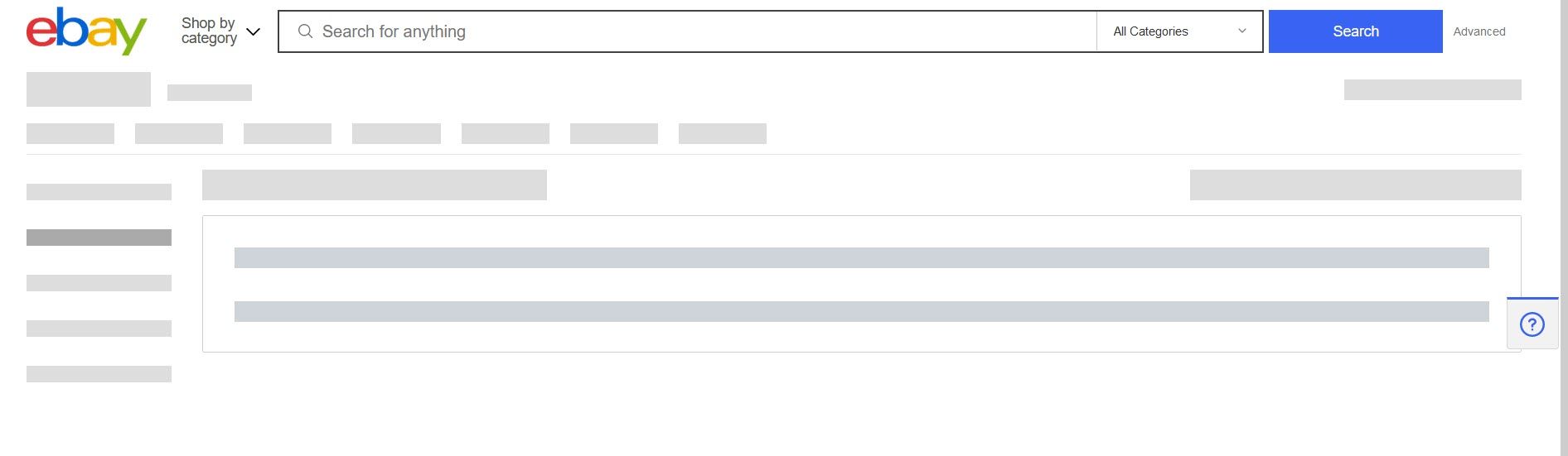 eBay sellers report Terapeak Product Research tool is not functioning, with the page stuck in a perpetual loading state of pulsing gray boxes.