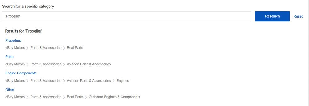Harry's demo makes it seem like sellers should be able to select any category on eBay, but the seller in this example sells boat parts exclusively listed in eBay Motors categories and Motors was the only category available to them.