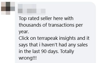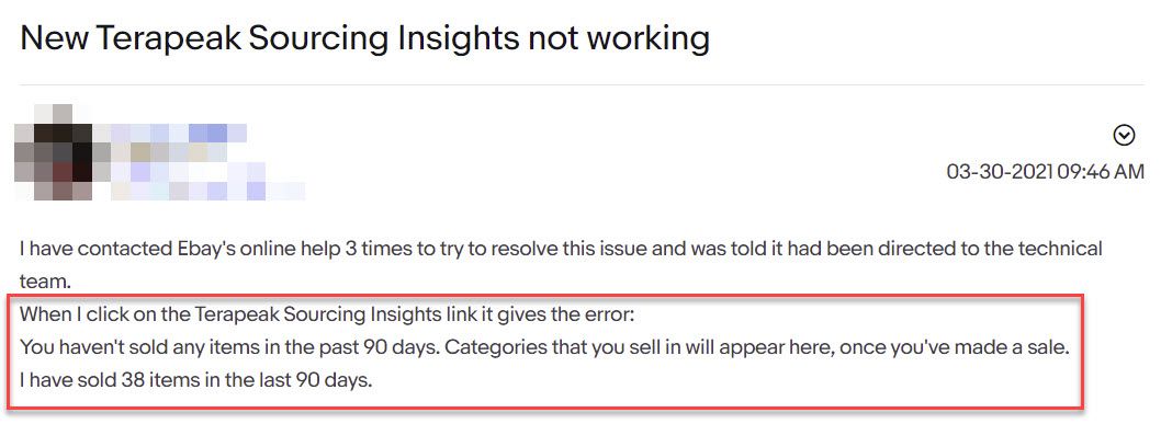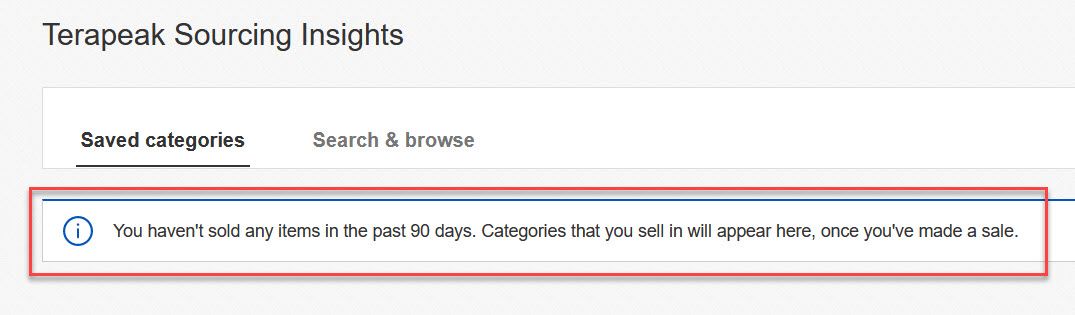 In working with a different seller on an unrelated project, I noticed they too had this message under Terapeak Sourcing Insights, when in fact they had almost 300 orders in the last 90 days, so I set out to investigate.
