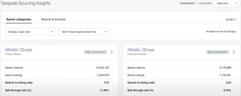 One of several new tools announced in the eBay Spring 2021 Seller Update is Terapeak Sourcing Insights. This tool will be available for eBay sellers with a Basic or higher store subscription and is presumably meant to compliment the existing Terapeak Product Research tool that is already available to these sellers.