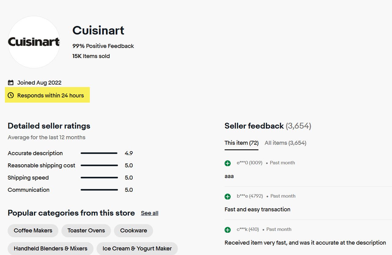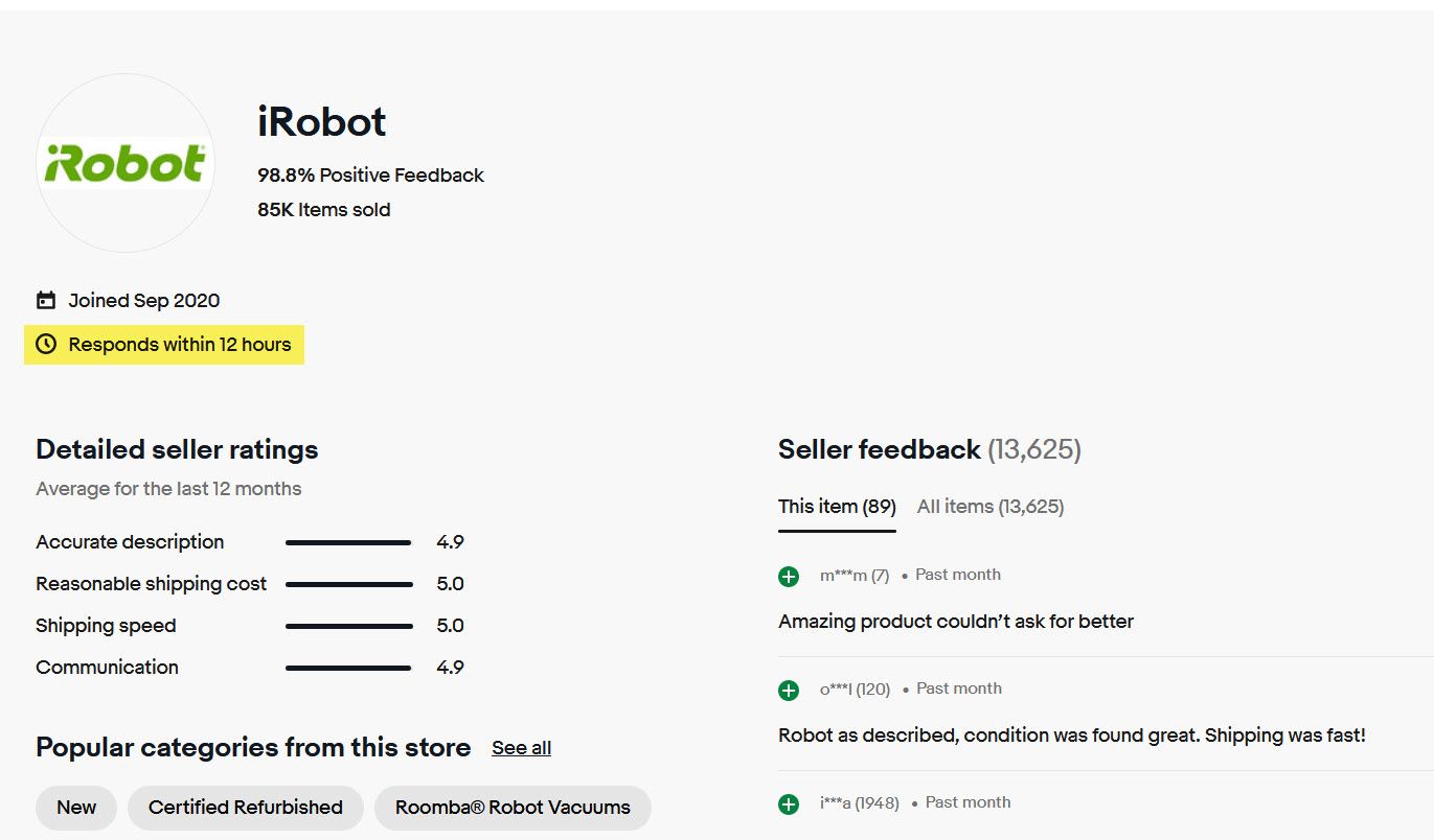 We are testing this feature because we heard from buyers that they value knowing if they can expect timely responses from a seller, and that it would encourage them to engage more on eBay. Currently, this signal shows up on the View Item page and is being tested with a subset of buyers to help us understand if it helps with increasing sales for our sellers and trust on the platform.