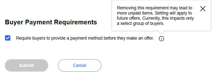 If a user is not willing to provide a payment method to be automatically charged if/when the seller accepts the offer, does that mean the user would be blocked from making any offers at all?