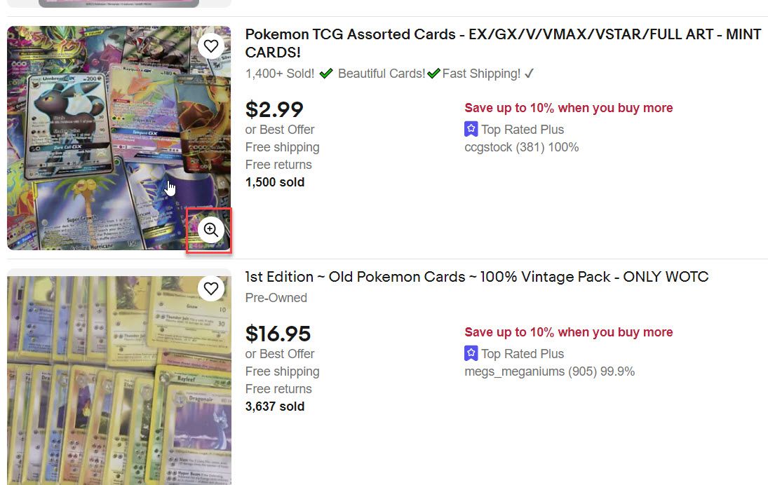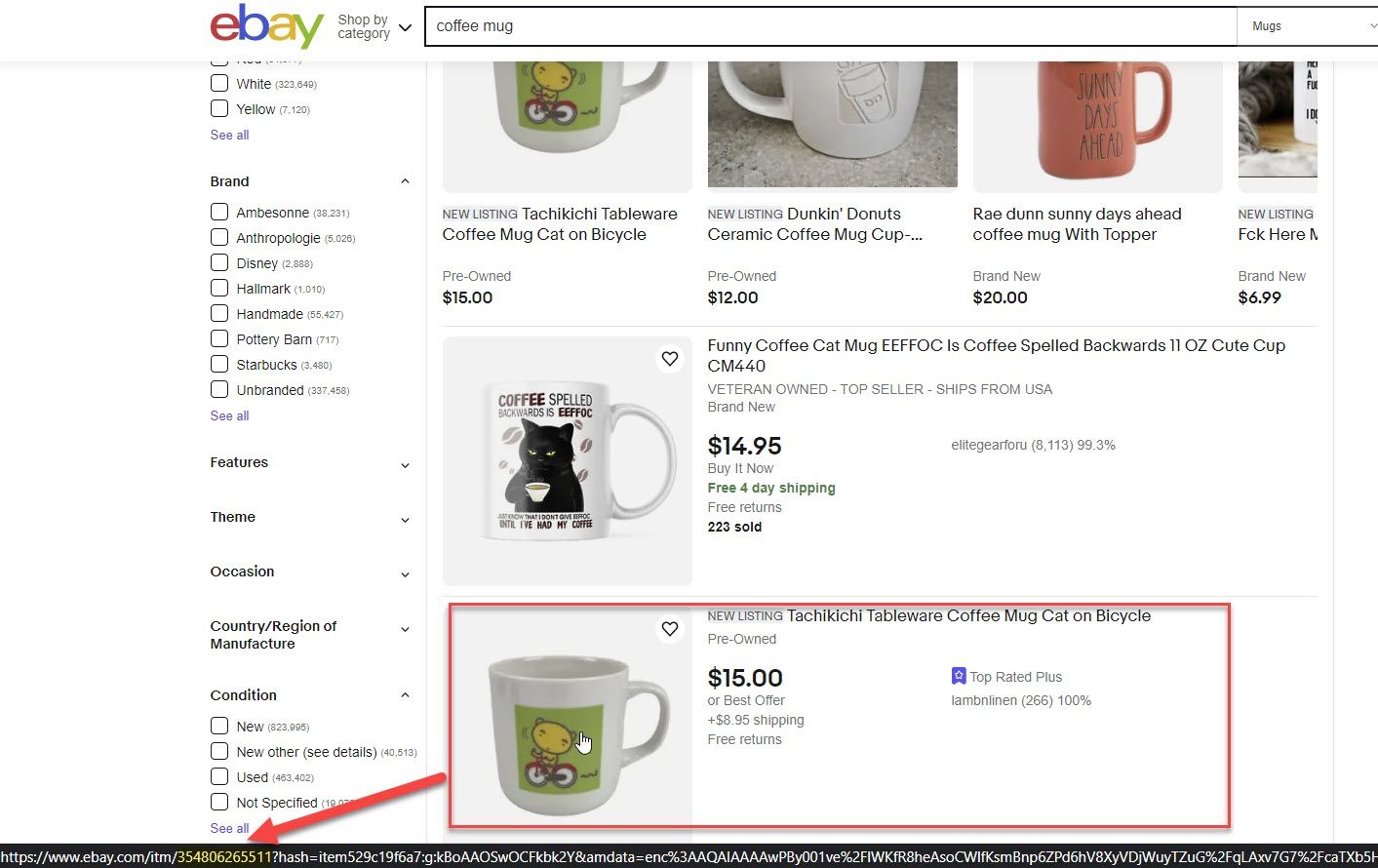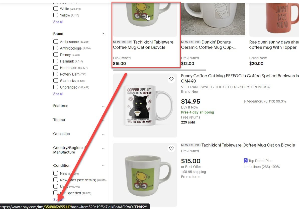 We can see these are the same listings by hovering over the result and comparing the item numbers in the URL.