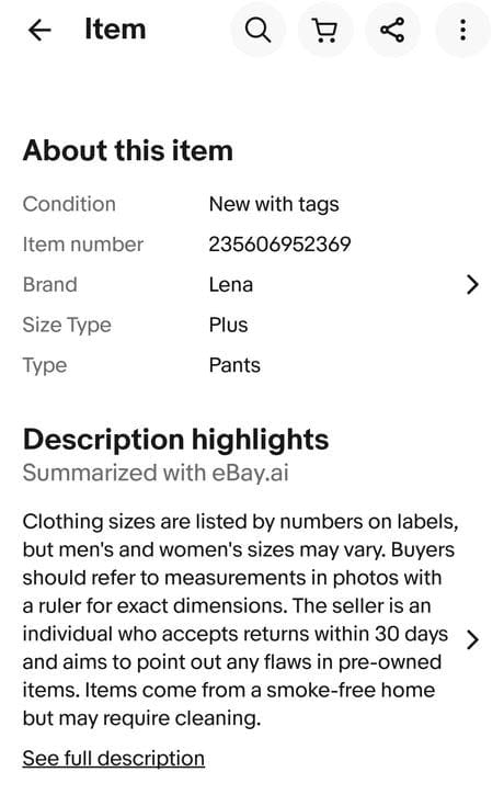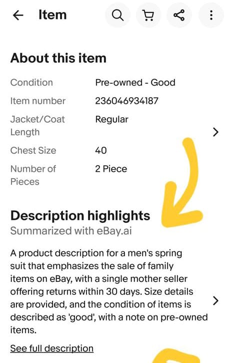 Those AI generated description summaries have now also started appearing onsite in both the eBay web and app experiences for some users as well.