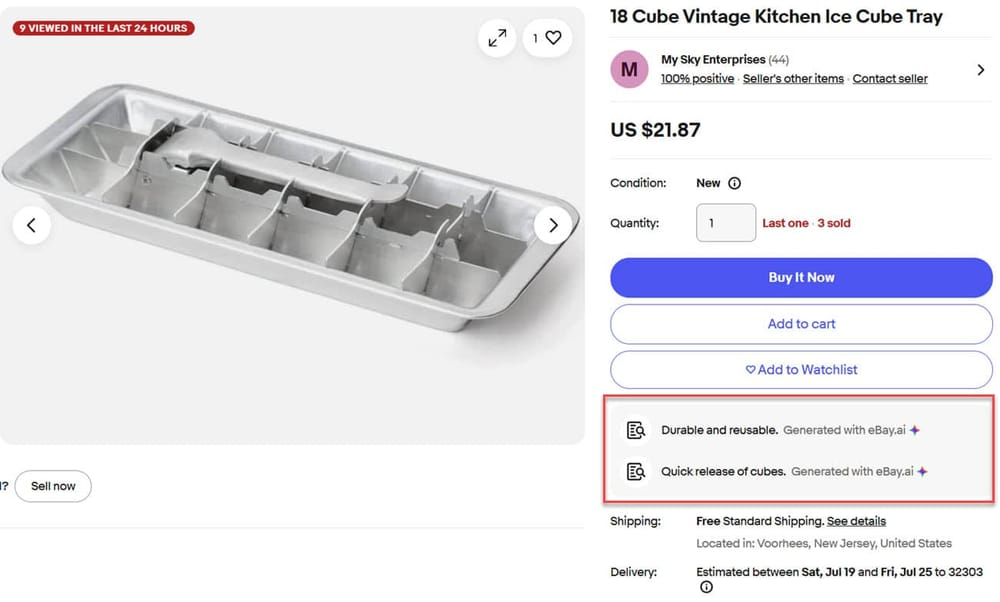 And eBay has been testing using AI to generate item detail highlights to feature in prominent and highly visible places on the listing page, which has only increased seller fears about potentially receiving claims or negative feedback from buyers who are disappointed if/when the AI doesn't get it right.