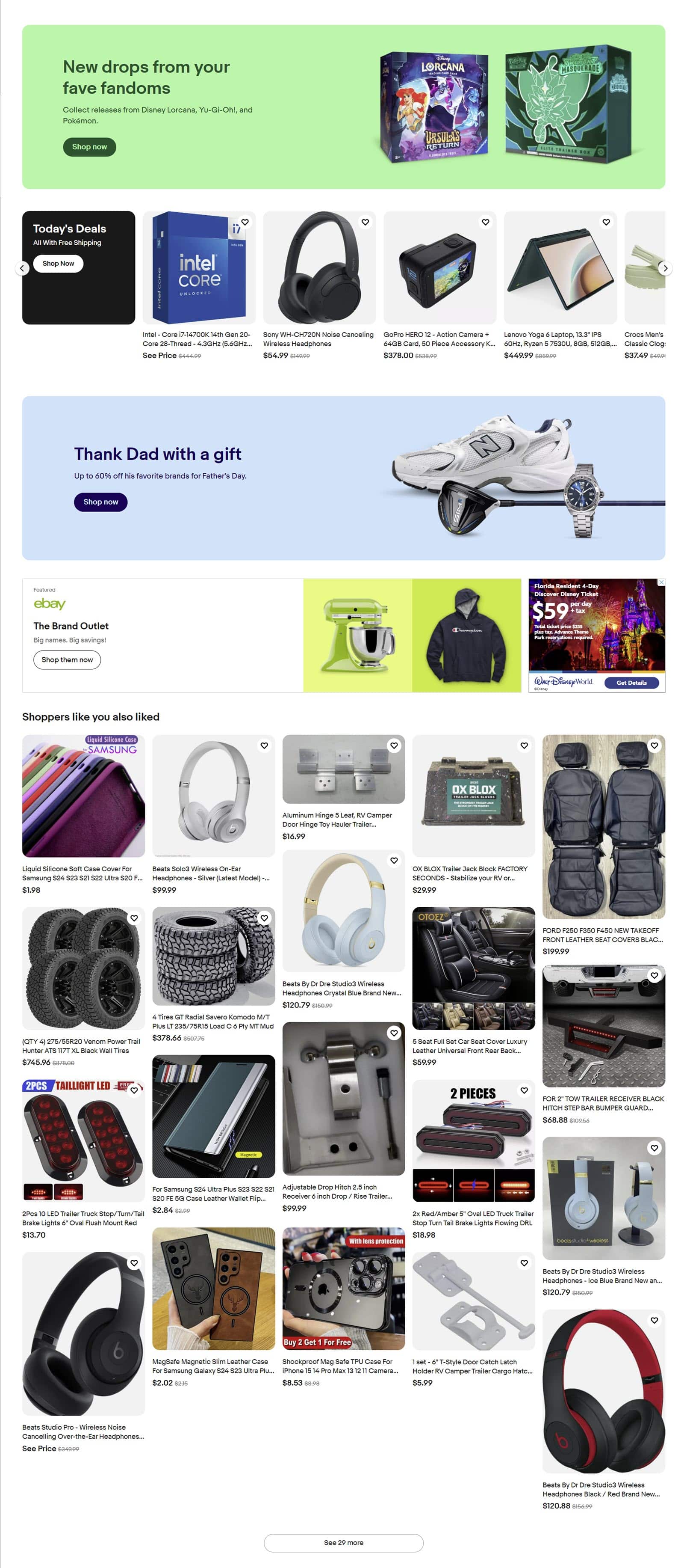And finally, more banner sections, Daily Deals, the Brand Outlet, and more recommendations that "shoppers like you also liked" with an option to click to see more.