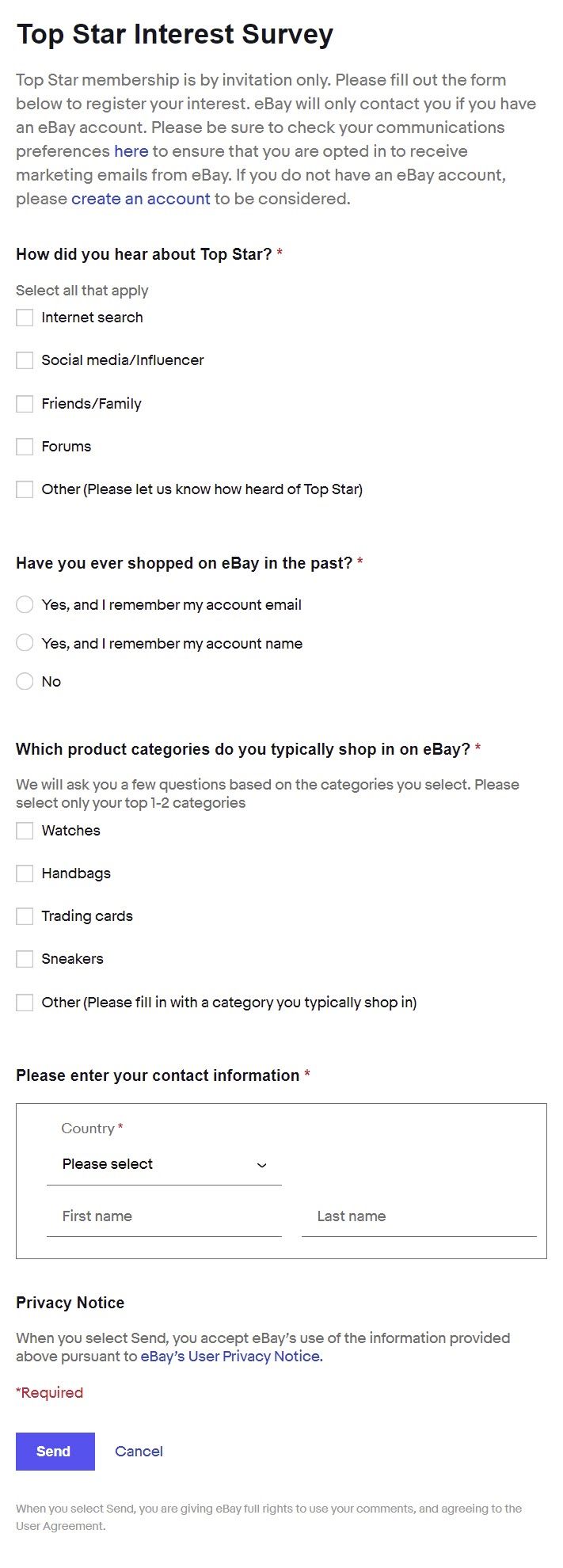 Even if you have an eBay login you might not have received an invitation to Top Star, but it’s not too late to let us know you want to join.