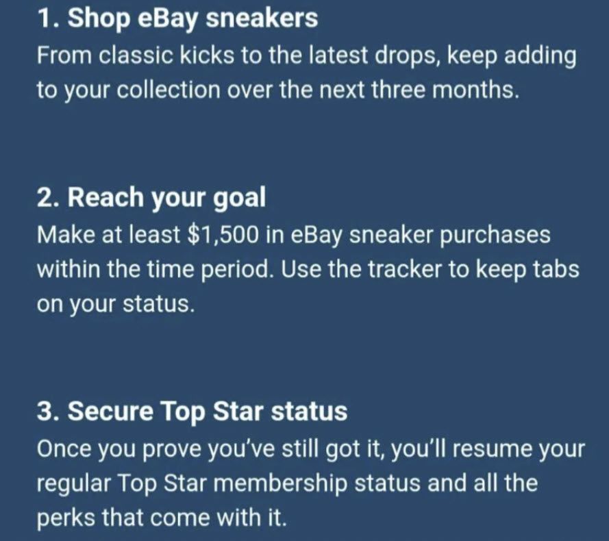 What is up with @ebay Top Star now? You have to spend like $1500 in a certain timeframe or something? And I just got access to a drop and everything is resell prices…….this is unfortunate