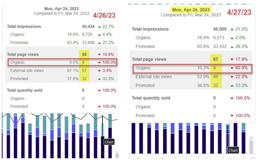This was functionality was particularly helpful for allowing sellers to catch anomalies and technical issues - like that time when eBay stopped showing organic views for several days.