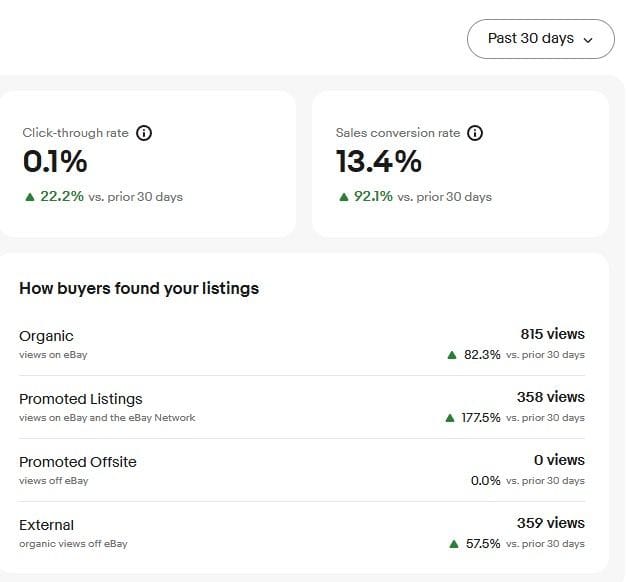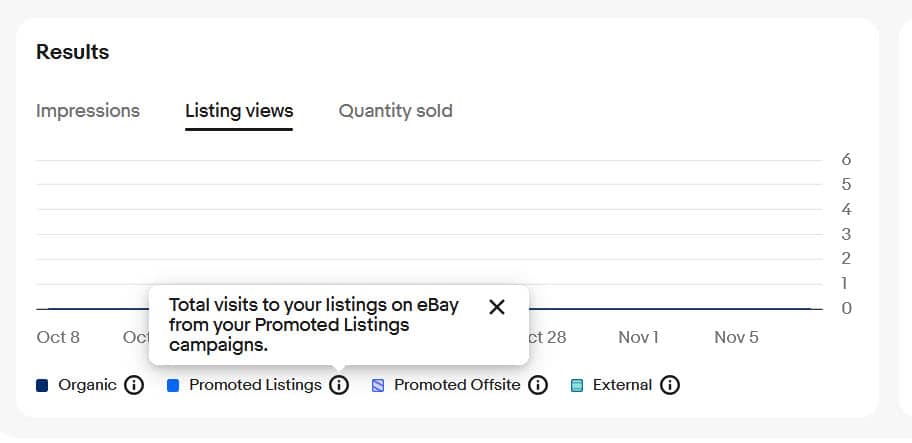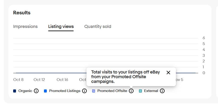Under the Listing Views tab, changes to the definitions of terms also raise questions about how external views (particularly external views from Promoted Listings General campaigns) are reported compared to the previous analytics.