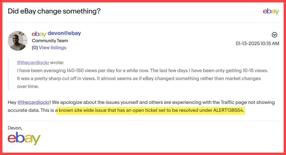 Are your eBay traffic reports showing zero organic views for the last two days? Let us know in the comments below!