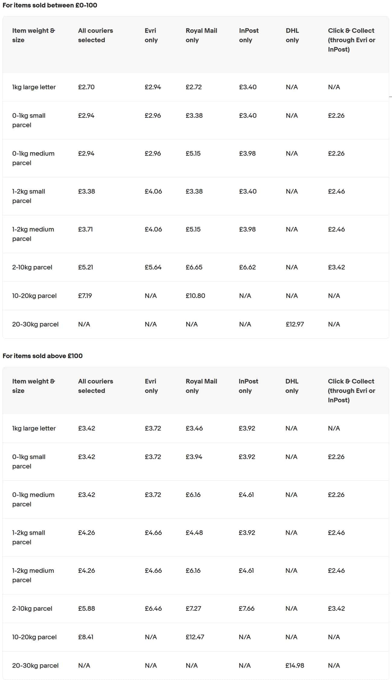 While sellers can technically choose to exclude certain couriers, eBay says those preferences may not be honored if shipments don't meet courier requirements - and choosing to exclude some couriers may result in higher delivery costs being shown to buyers.