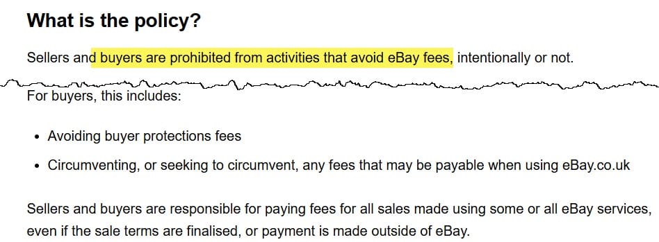 eBay has now edited their UK Fee Avoidance Policy page to explicitly call out it is a violation to try to avoid the Buyer Protection Fee.