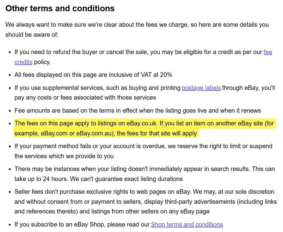 The policy also provides that there may be a currency conversion fee applied for listings created or sold on other eBay sites.