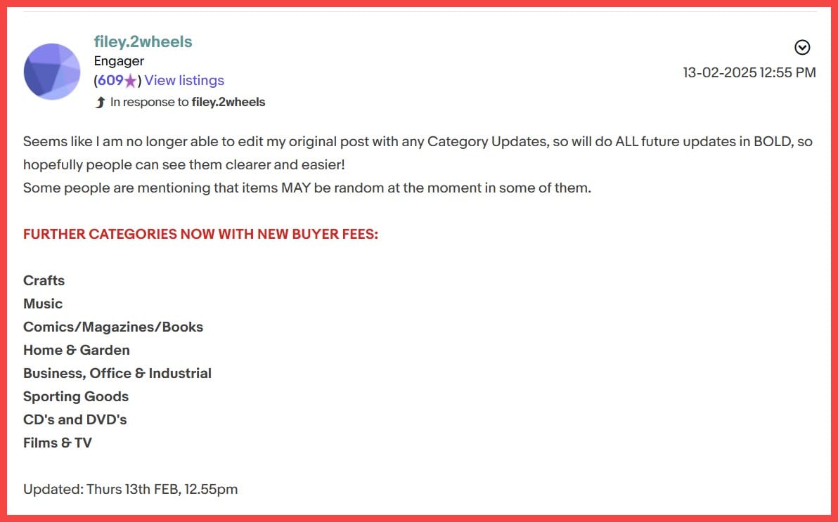 It's also important to note that just because Buyer Fees are being phased in and will only apply to Electronics on February 4th, that doesn't mean other changes are also being delayed.