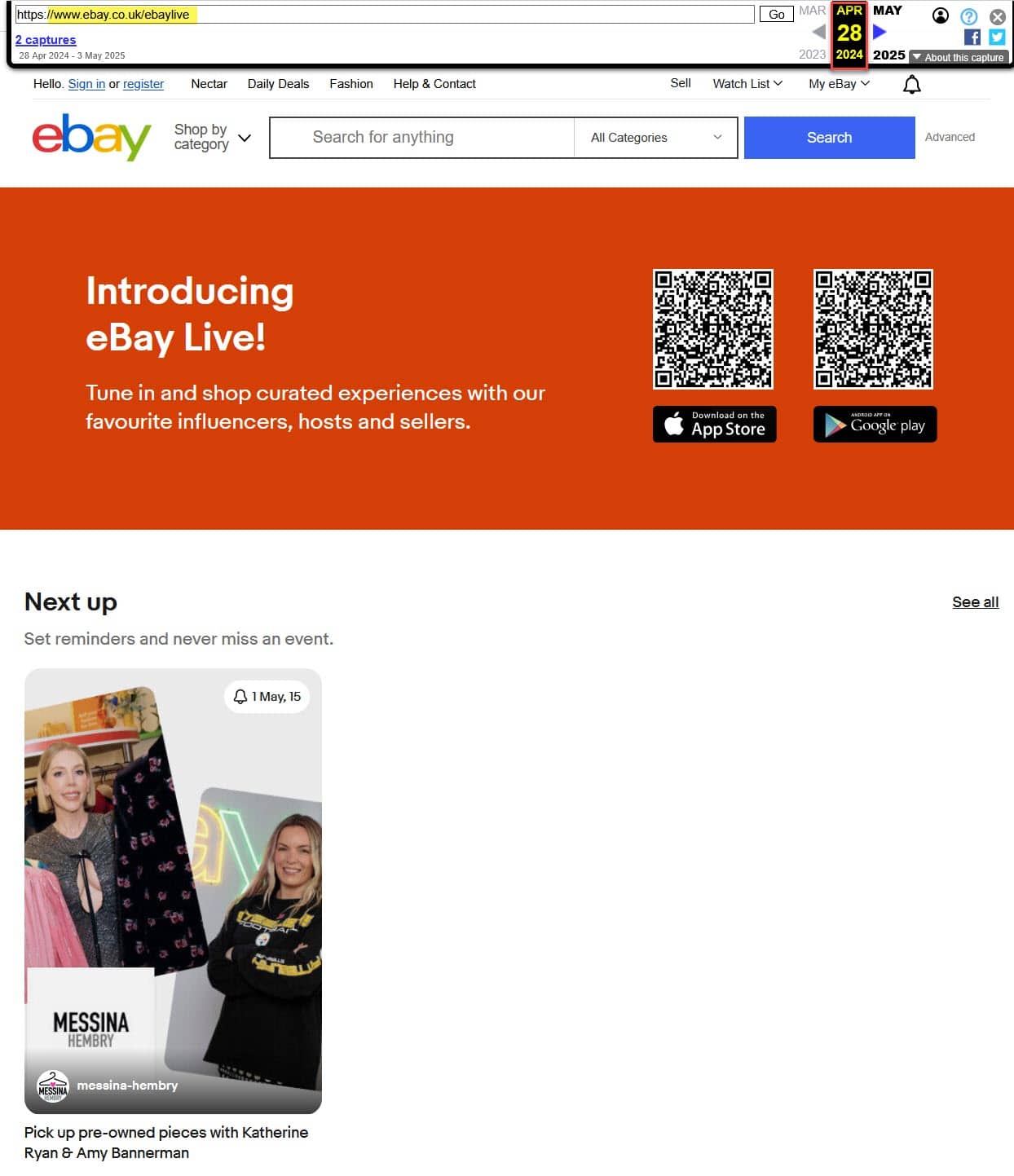 And the Internet Archive Wayback Machine shows ebay.co.uk/ebaylive has been actively hosting livestreams since at least April 28, 2024.