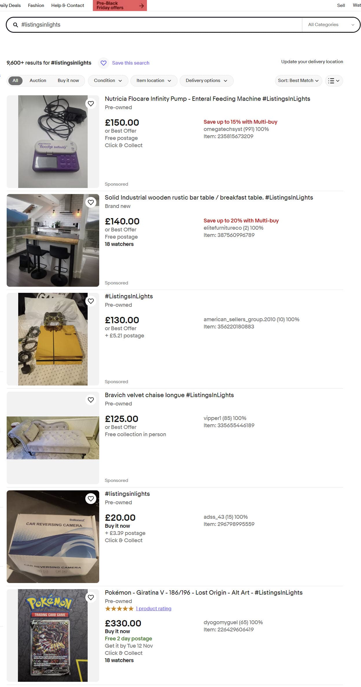 Private UK sellers were invited to list items from November 2-6 with the hashtag #ListingsInLights in the title to have the chance at being featured in this event, plus a chance at winning one of 25 £200 eBay vouchers.
