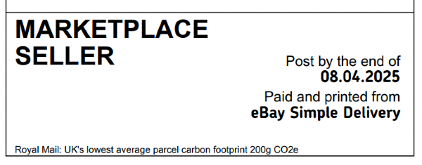 If this is true then it would appear ebay have sorted an agreement with ebay. Maybe when Marco stated earlier that the PO's must accept. he may well have been correct but not party to all the information, i.e. 'market place seller' on the label.
