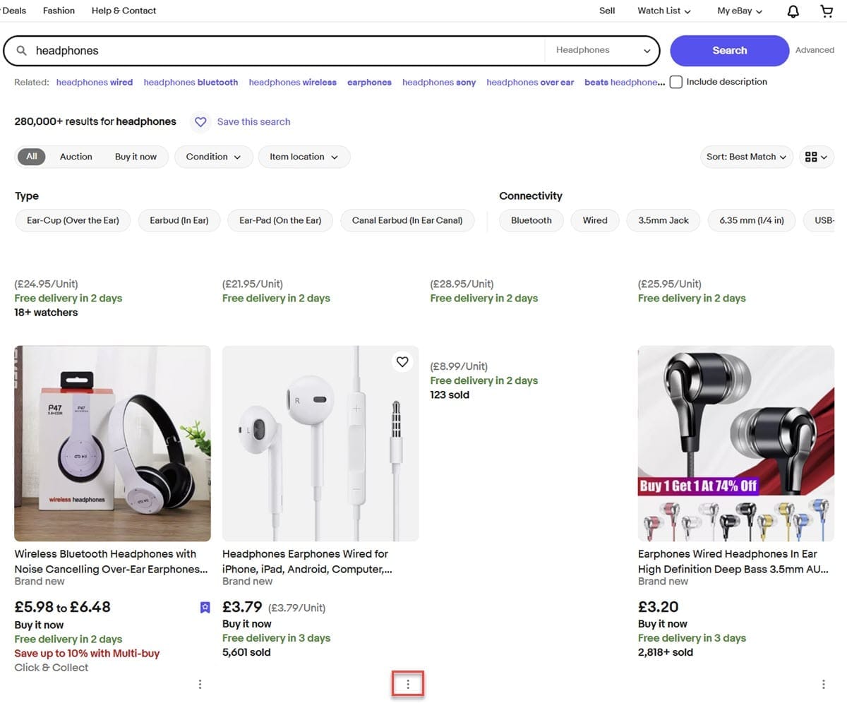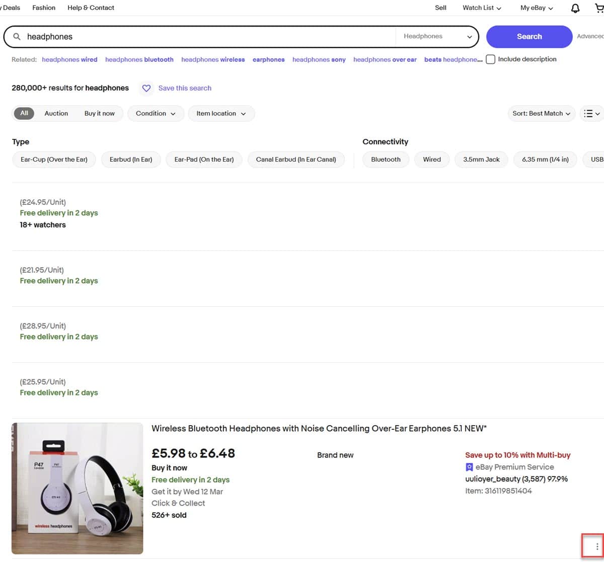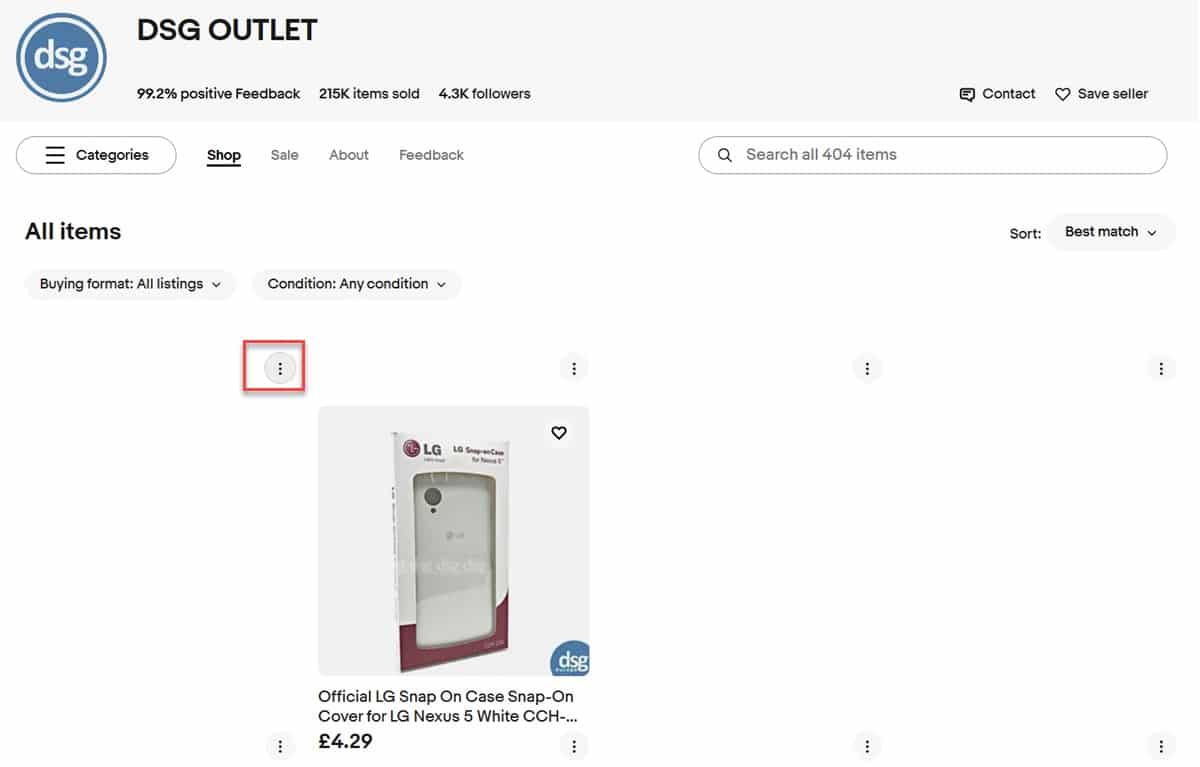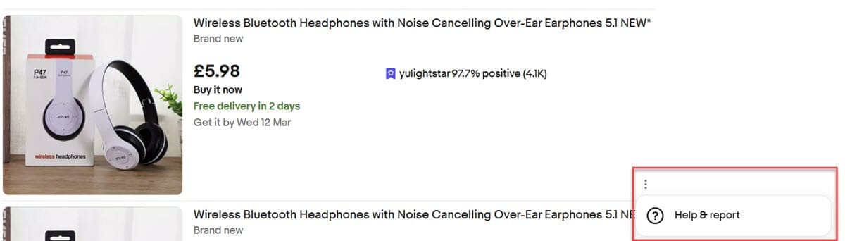 While eBay has not yet provided an explanation for what is happening, it's possible the addition of an icon with 3 dots which allows users to report items directly from search and store pages may be part of the problem.