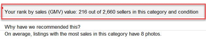 To make it even more fun - the seller who sent me that screenshot says they checked their Listing Quality Report and it shows they're ranked 216 out of 2,660 sellers in that category for GMV, which would be about ~8%.