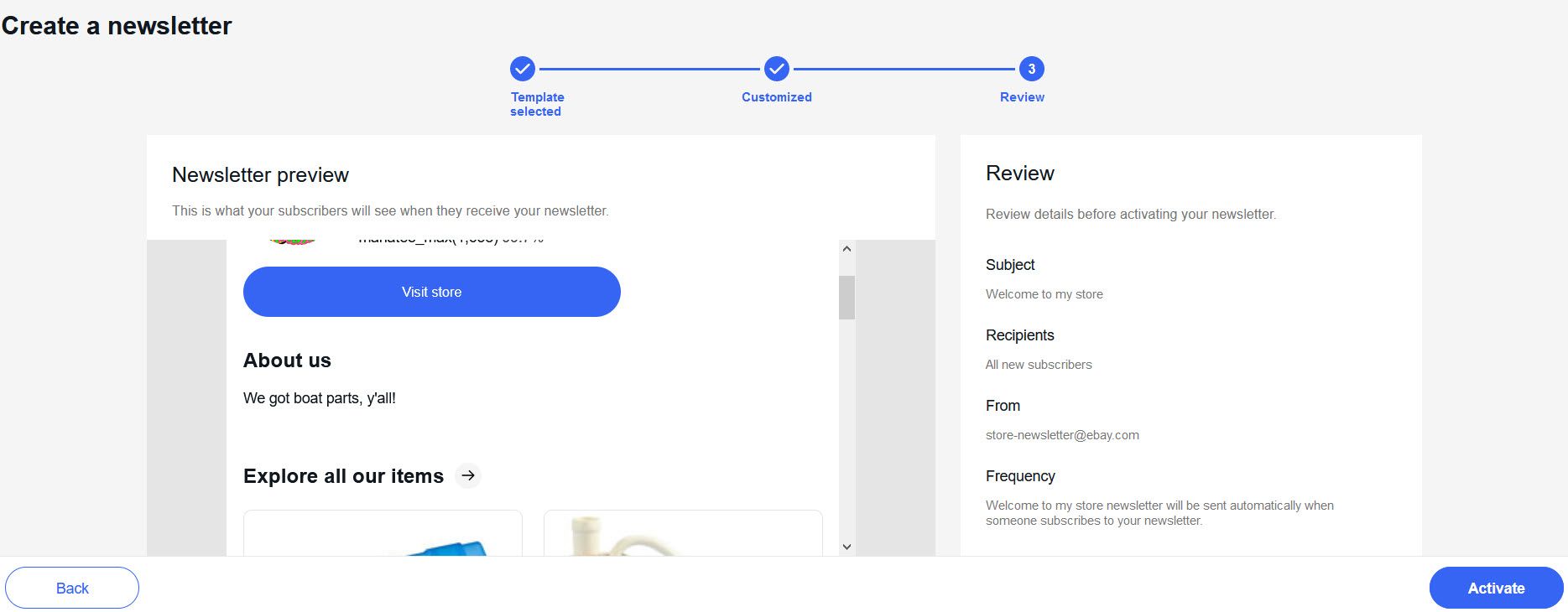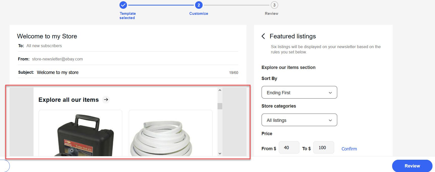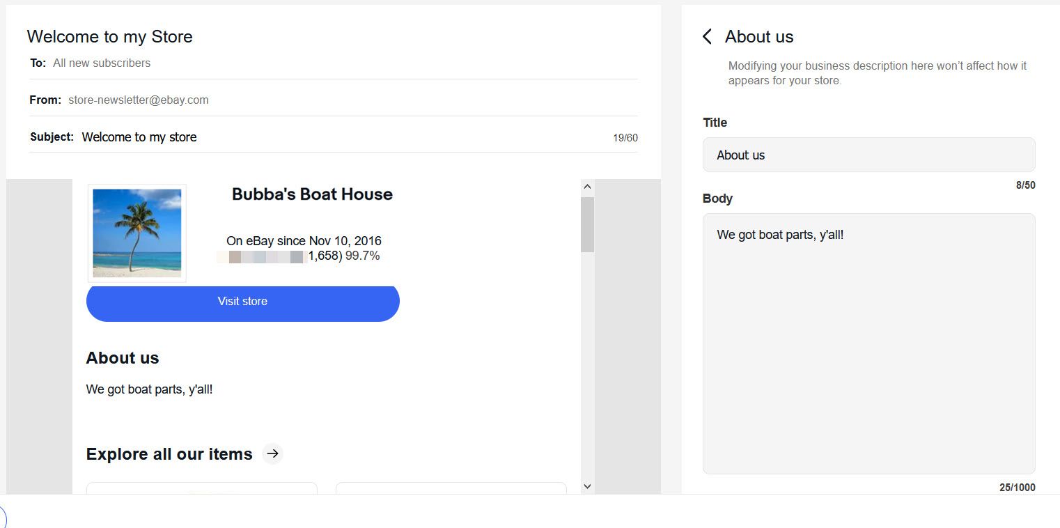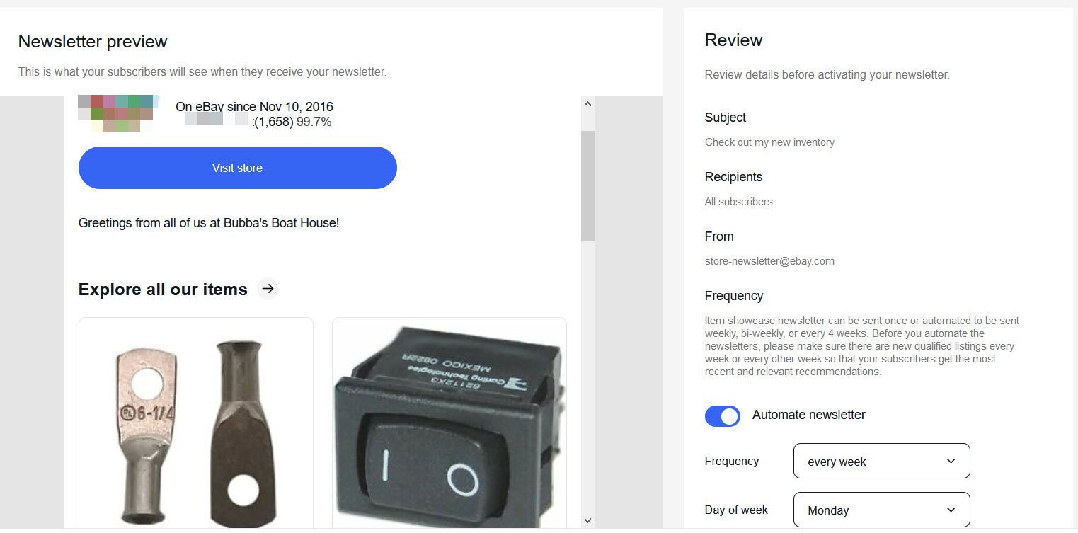 eBay has also updated the Store Newsletter function. There are two different newsletters you can send, a Welcome email for new followers and a recurring Item Showcase newsletter.