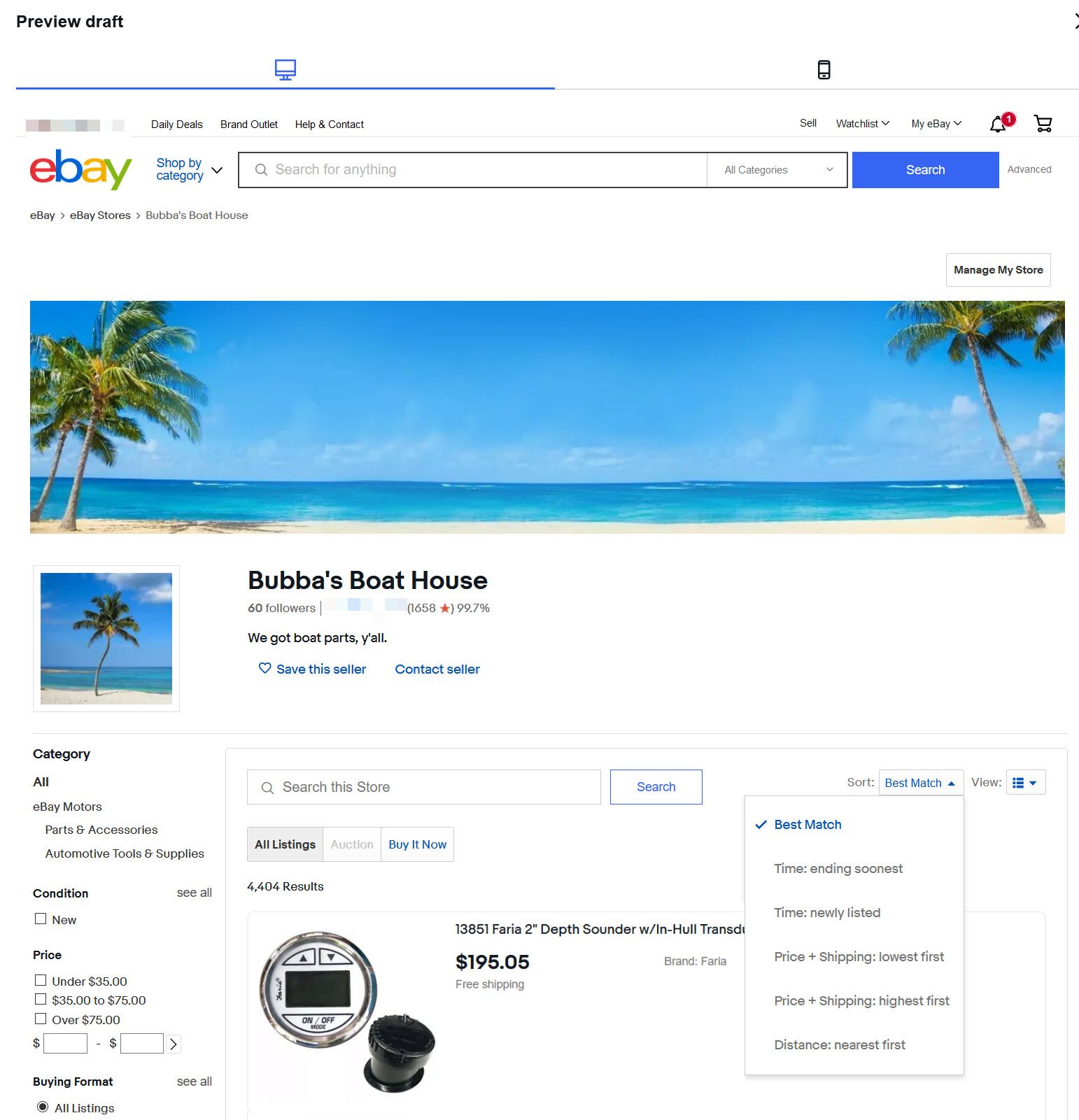 Unfortunately, it also appears that sellers have lost one critical piece of functionality - the ability to set the default sort order for their storefront to Best Match, Lowest or Highest Priced, Newly Listed, or Ending Soonest.